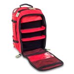 - Phần trước dùng để lưu trữ máy khử rung tim (defibrillator), cố định bằng dây thun đàn hồi, kèm hai vách ngăn điều chỉnh và hai túi lưới đa năng.