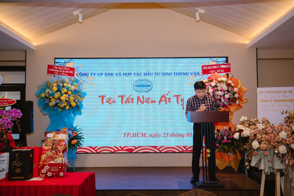 Ngày 23/1/2026 vừa qua, Công ty Cổ phần Xuất nhập khẩu và Hợp tác đầu tư Giao thông Vận tải (TRACIMEXCO) đã tổ chức chương trình tiệc tất niên trong không khí rộn ràng, gắn kết và đầy ý nghĩa. Sự kiện không chỉ là dịp để toàn thể cán bộ, nhân viên cùng nhau nhìn lại một năm làm việc với nhiều nỗ lực và thành quả, mà còn mang ý nghĩa đặc biệt khi chào mừng cột mốc 30 năm hình thành và phát triển của công ty.